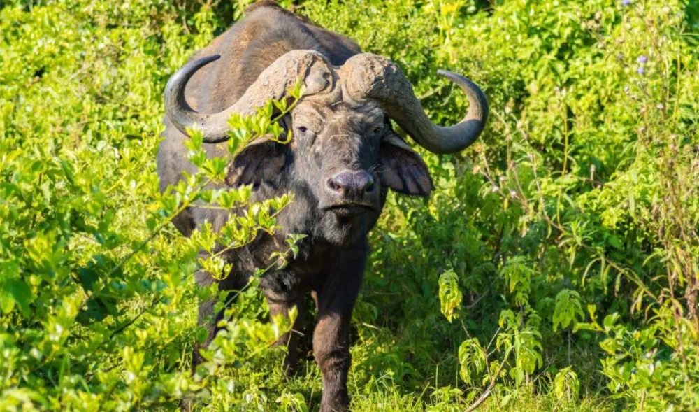 park is home to black rhinos, elephants, and buffaloes, which roam the dense forests
