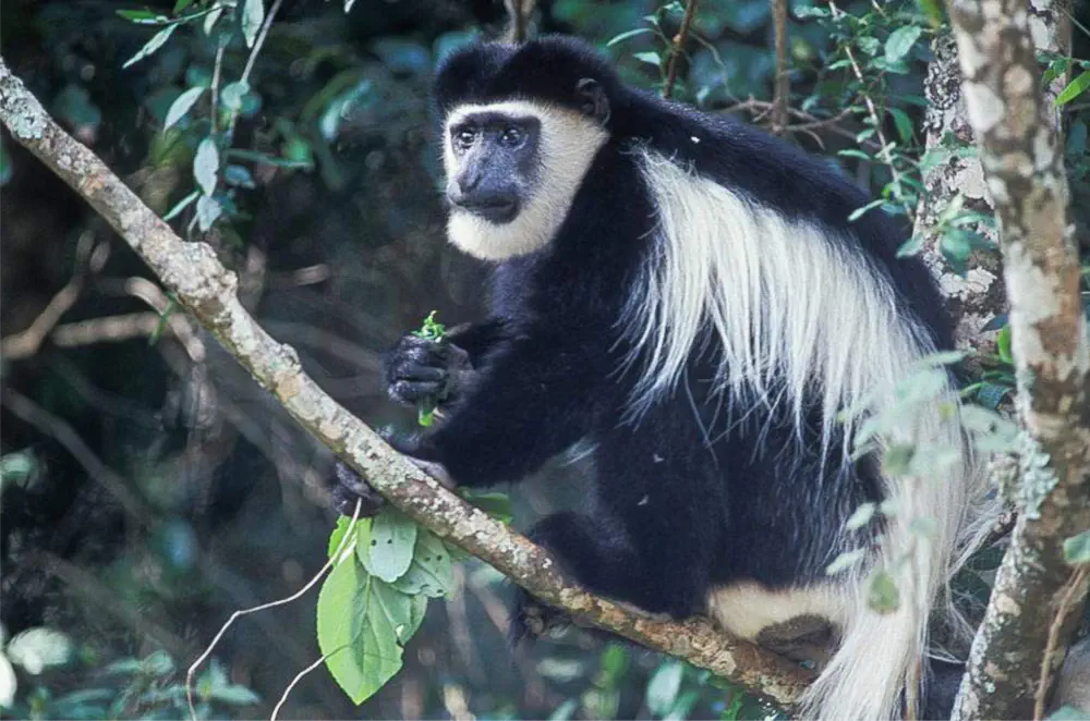 leopards and hyenas lurk in the shadows, while colobus monkeys and Sykes’ monkeys