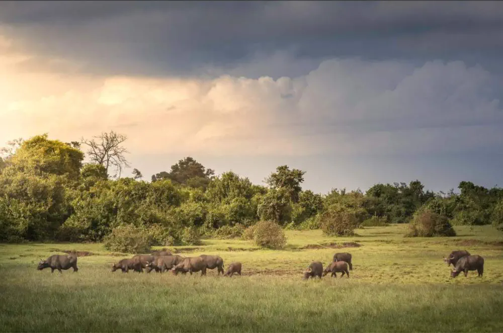 park is home to black rhinos, elephants, and buffaloes, which roam the dense forests