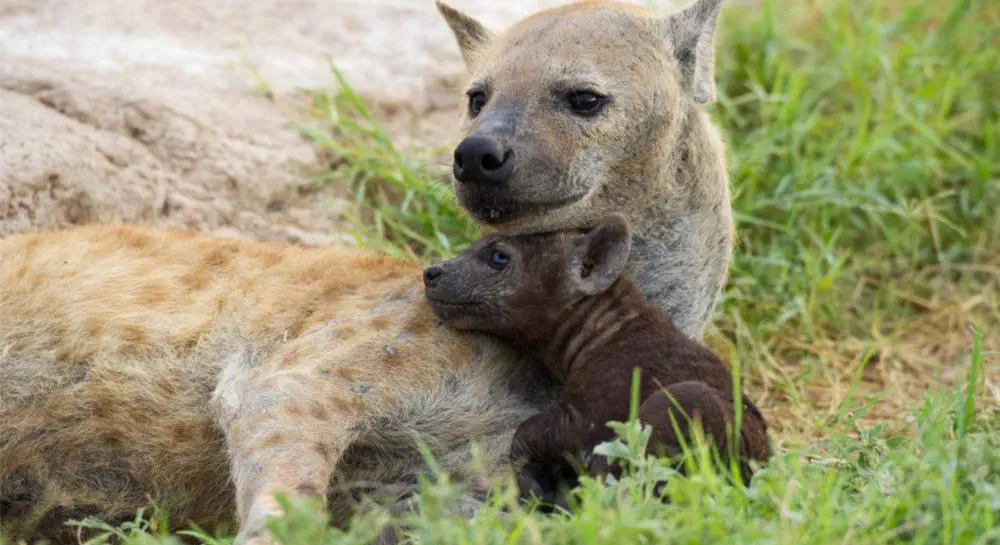 Spotted hyena with cub in Amboseli National Park, Kenya